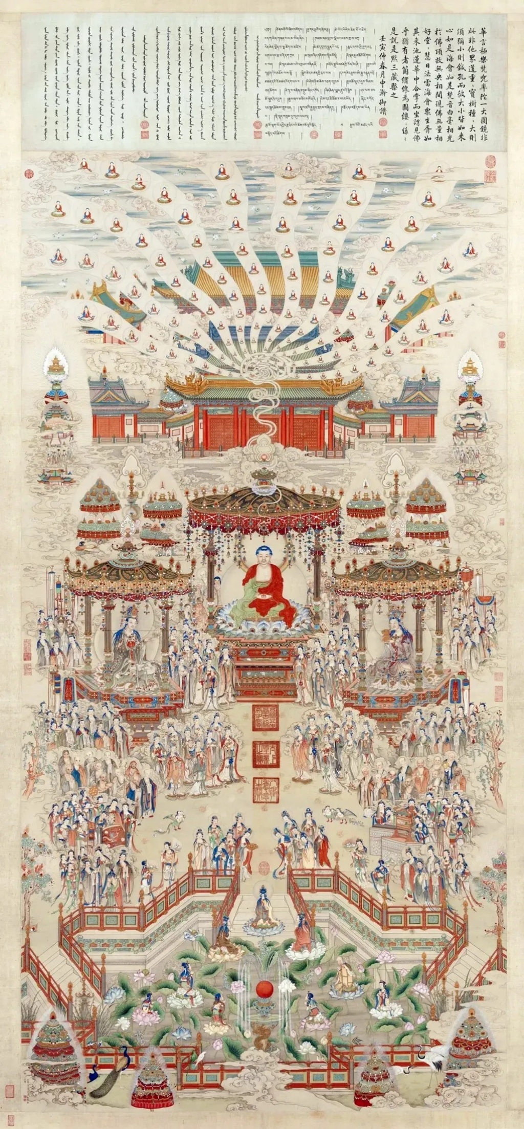 这个世界中,大地由黄金铺就,池中充满八功德水,楼阁宫殿皆由珍宝构成,四季如春,无有寒暑。更为重要的是,极乐世界中没有三恶道(地狱、饿鬼、畜生),也没有种种苦难。