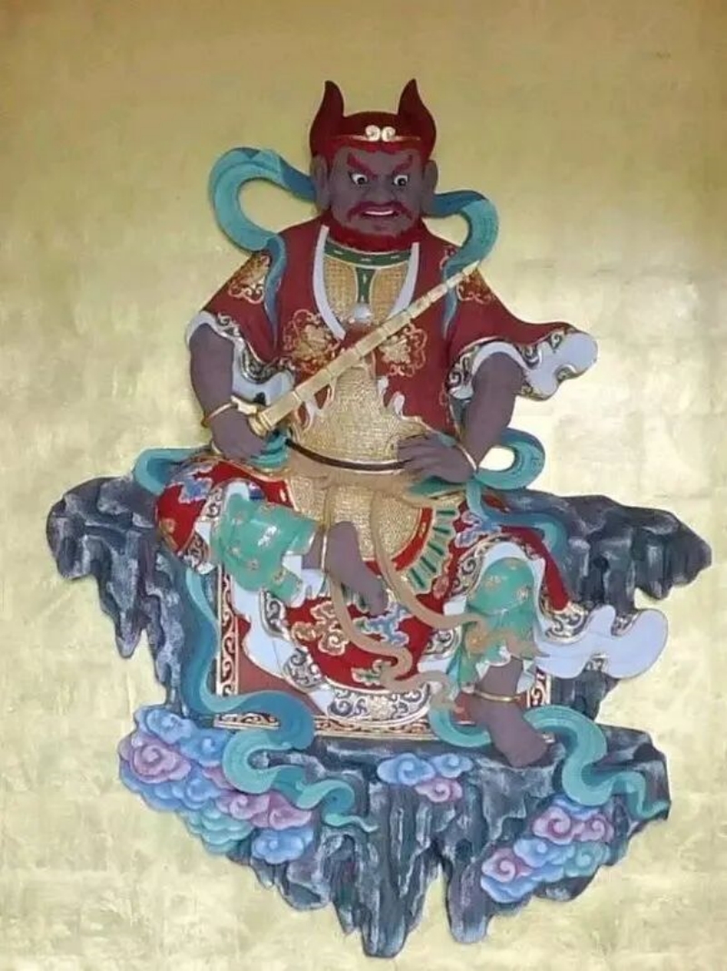 明代高僧紫柏真可曾开示:“庖厨之地,最易生烦恼,亦最易见功夫。”监斋菩萨的忿怒相,正是对治修行人在烟火考验中可能生起的吝啬、烦躁、分别之心的慈悲示现。