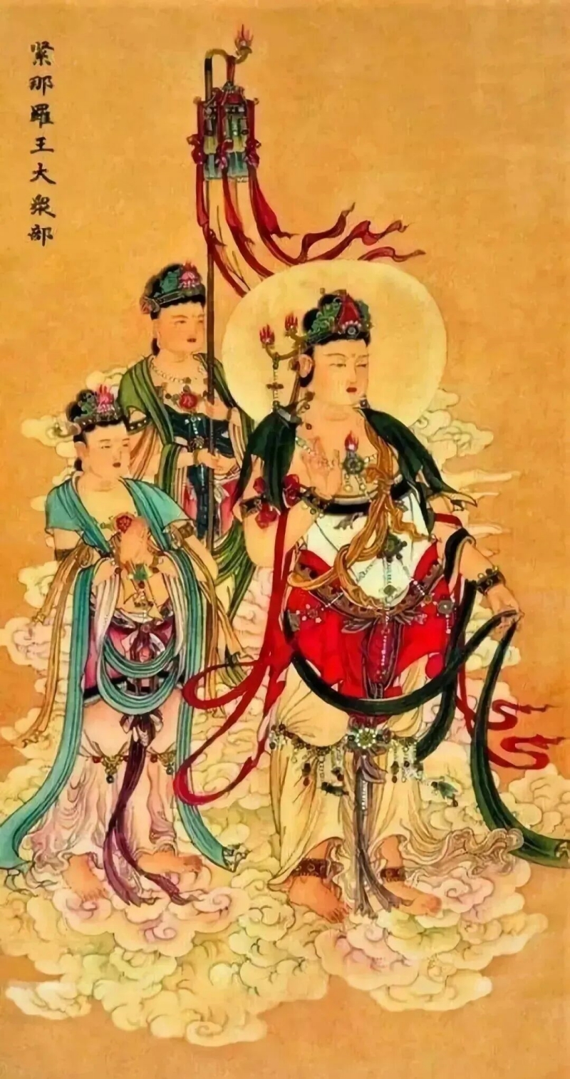 监斋菩萨梵名“紧那罗”,原为印度神话中之神,后被佛教吸收为“八部众”(天龙八部)之第七。